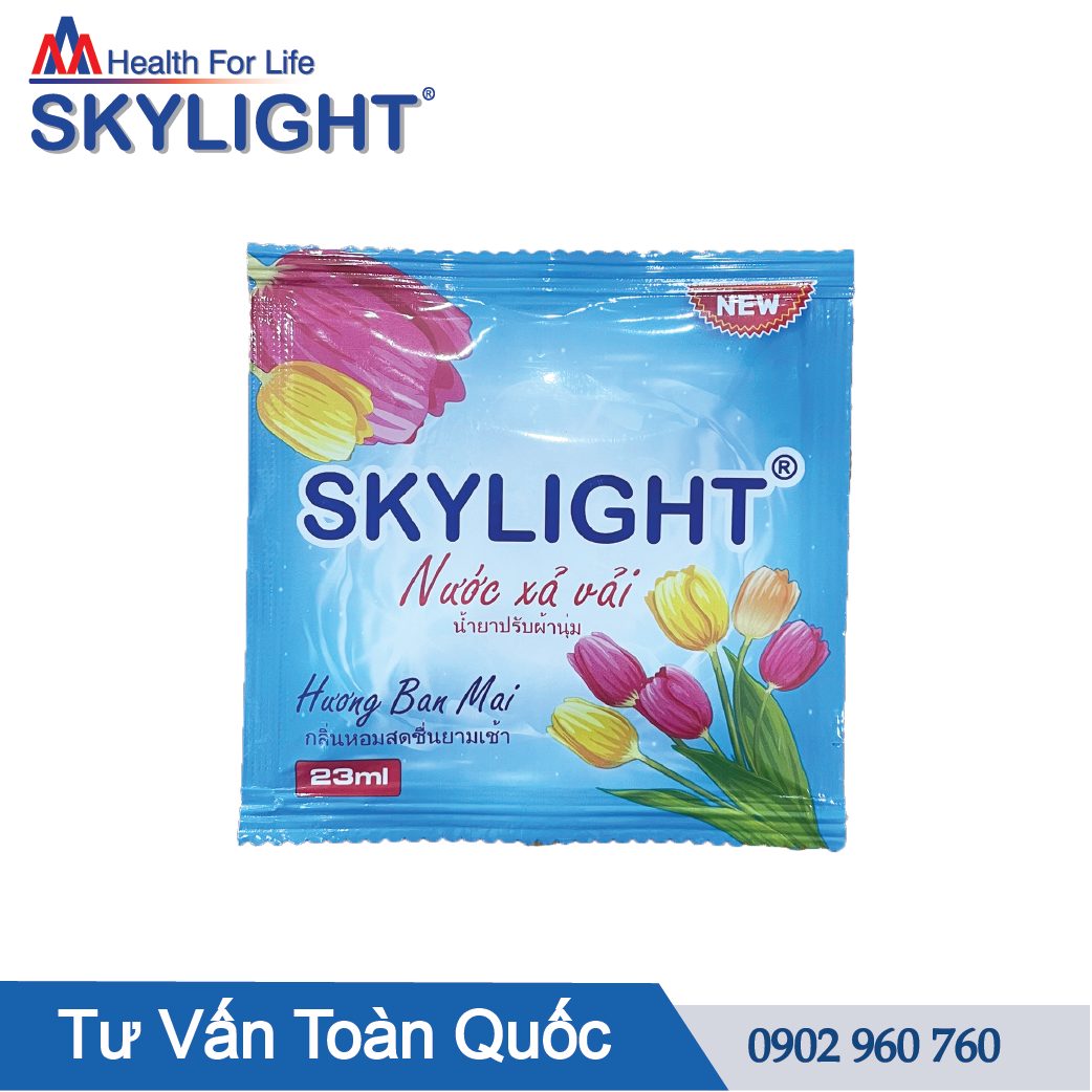 - Giặt máy: Hòa tan 1 gói nước xả Skylight vào nước xả cuối cùng hoặc đổ trực tiếp vào hộc chứa nước xả vải của máy.