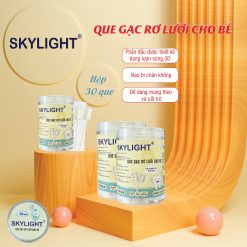 Que gạc rơ lưỡi Skylight được sản xuất trên dây chuyền công nghệ hiện đại, đảm bảo đạt chuẩn về vệ sinh và an toàn cho các bé.